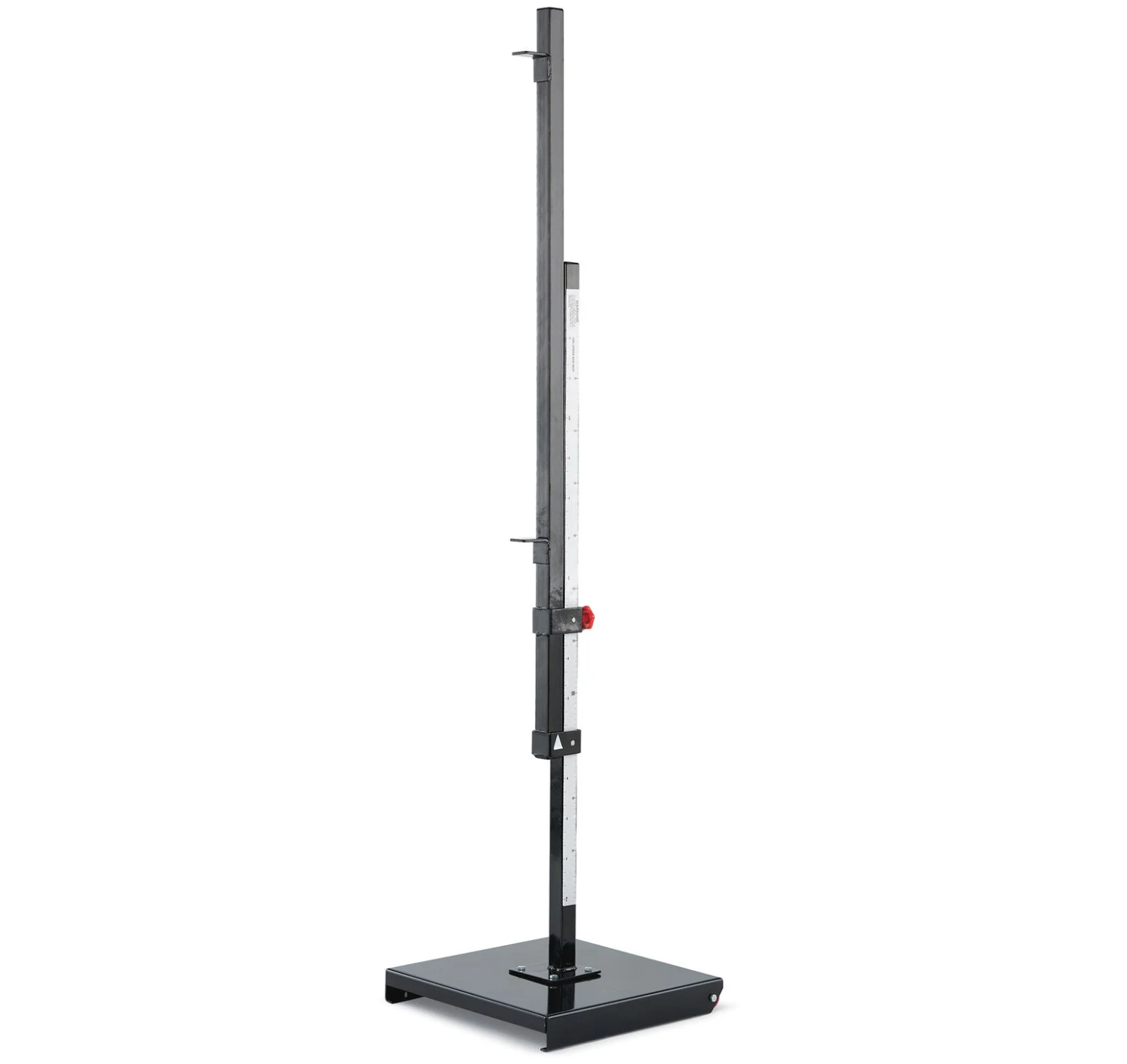 All steel construction with black powder coat finish. 18” square base includes wheels for easy mobility. Height scales read both English and Metric from 2’ to 8’. Meets High School and NCAA specifications. Five year warranty. Sold in pairs. WARNING: Products may contain chemicals known to the state of California to cause cancer, birth defects, or other reproductive harm. www.P65Warnings.ca.gov |